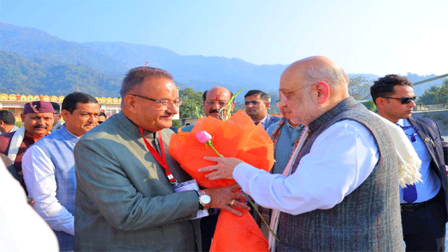 गृहमंत्री अमित शाह का उत्तराखण्ड आगमन पर स्वागत एवं अभिनंदन करते कृषि मंत्री गणेश जोशी