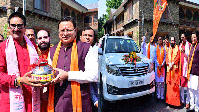 देहरादून: मुख्यमंत्री पुष्कर सिंह धामी ने शुक्रवार को मुख्यमंत्री आवास से कुशीनगर में भगवान सूर्य की मूर्ति के जलाभिषेक के लिए पवित्र नदियों के जल से भरी कलश यात्रा को रवाना किया।