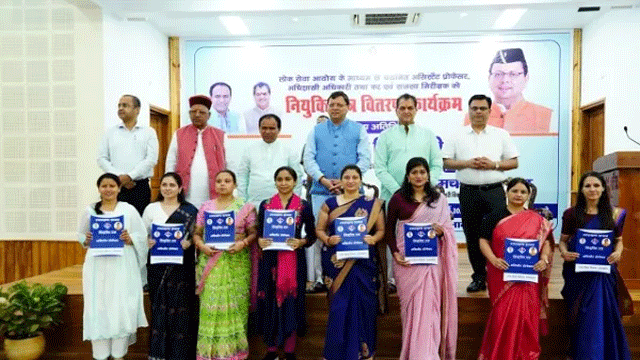 देहरादून: मुख्यमंत्री पुष्कर सिंह धामी ने सोमवार को मुख्यमंत्री आवास स्थित मुख्य सेवक सदन में आयोजित कार्यक्रम में उत्तराखण्ड लोक सेवा आयोग के माध्यम से उच्च शिक्षा विभाग में चयनित 68 असिस्टेंट प्रोफेसर, शहरी विकास विभाग में चयनित 63 अधिशासी अधिकारी एवं 22 कर व राजस्व निरीक्षकों को नियुक्ति पत्र प्रदान किए।