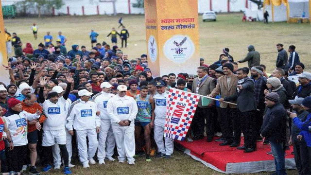 देहरादून: मुख्य निर्वाचन अधिकारी डॉ. बी वी आर सी पुरुषोत्तम के निर्देशों के क्रम में “स्वस्थ मतदाता-स्वस्थ लोकतंत्र” की थीम पर रविवार को हाथीबड़कला स्थित सर्वे स्टेडियम में 10 किमी दौड़ का आयोजन किया गया। इस दौड़ में भारतीय सेना, आईटीबीपी, उत्तराखण्ड पुलिस, सर्वे ऑफ़ इंडिया, सचिवालय एथलेटिक क्लब समेत एक हज़ार से अधिक प्रतिभागियों ने प्रतिभाग किया। कार्यक्रम में एडिशनल सर्वेयर जनरल श्री श्याम वीर सिंह ने बतौर मुख्य अतिथि विजेताओं को सम्मानित किया।