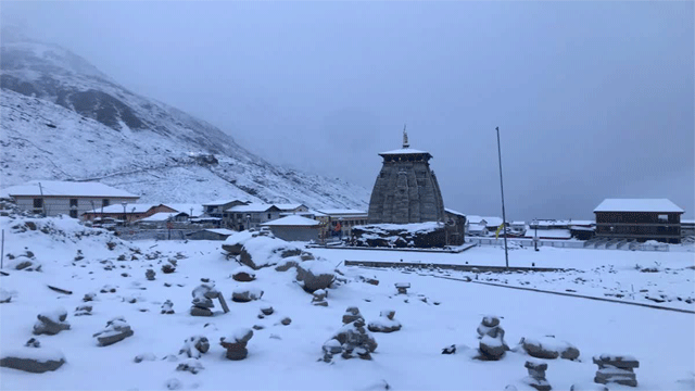 बाबा केदार के दर पर इस सीजन की पहली बर्फवारी हुई है।