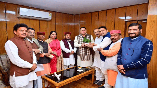 मुख्यमंत्री पुष्कर सिंह धामी से विधानसभा परिसर में विधानसभा बजट सत्र में उत्तराखण्ड (उत्तर प्रदेश जमींदारी विनाश और भूमि व्यवस्था अधिनियम, 1950) (संशोधन) विधेयक, 2025 सर्व सहमति से पारित होने पर विधायक उमेश शर्मा काऊ, महंत दिलीप रावत, प्रमोद नैनवाल, श्रीमती रेणु बिष्ट, सुरेश चौहान, राम सिंह कैड़ा , महेश जीना , राजकुमार , अनिल नौटियाल, सहित विभिन्न विधायकों ने भेंट कर इस ऐतिहासिक कार्य के लिए मुख्यमंत्री का आभार व्यक्त किया।