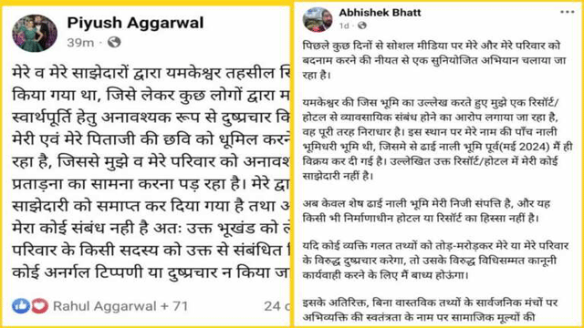 मेरे व मेरे साझेदारों द्वारा यमकेश्वर तहसील स्थित एक भूखंड क्रय किया गया था, जिसे लेकर कुछ लोगों द्वारा मात्र अपनी राजनैतिक स्वार्थपूर्ति हेतु अनावश्यक रूप से दुष्प्रचार किया जा रहा है और मेरी एवं मेरे पिताजी की छवि को धूमिल करने का प्रयास किया जा रहा है,